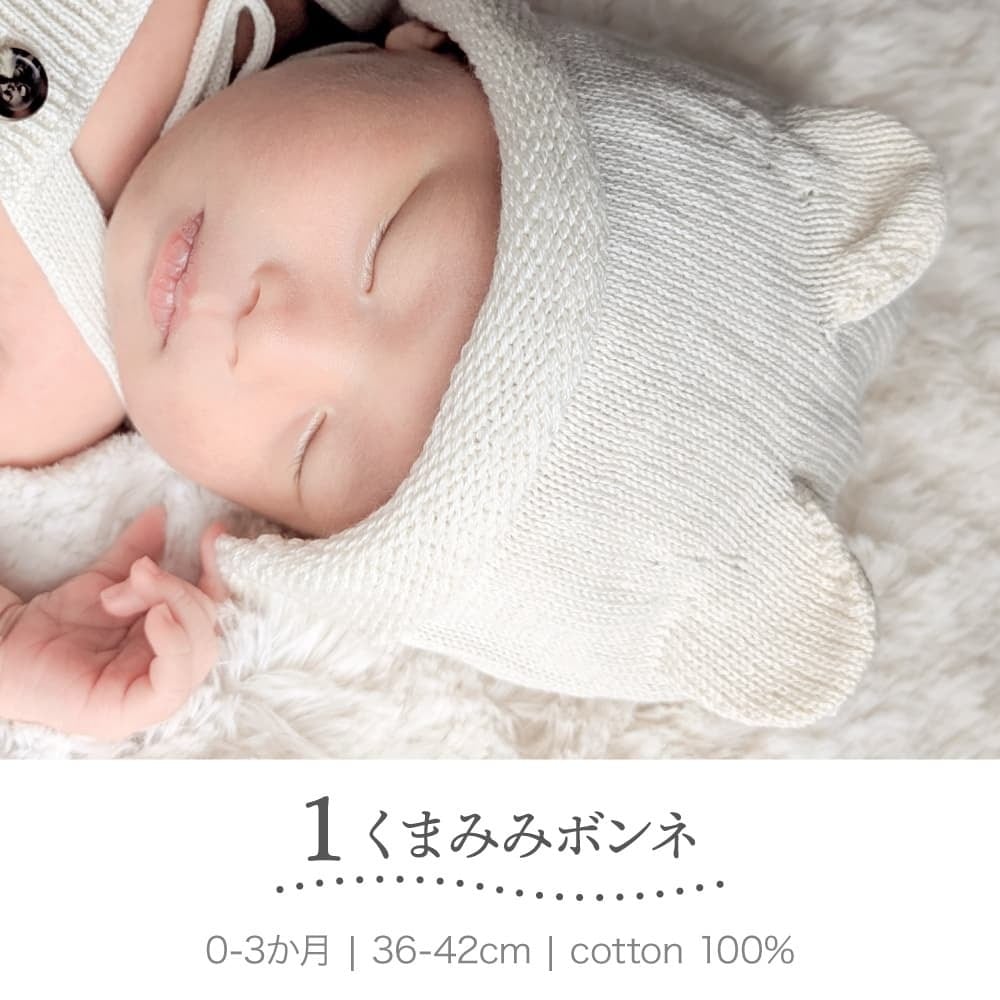新生児用 くまみみボンネ ニューボーンフォト 衣装 オーガニックコットン