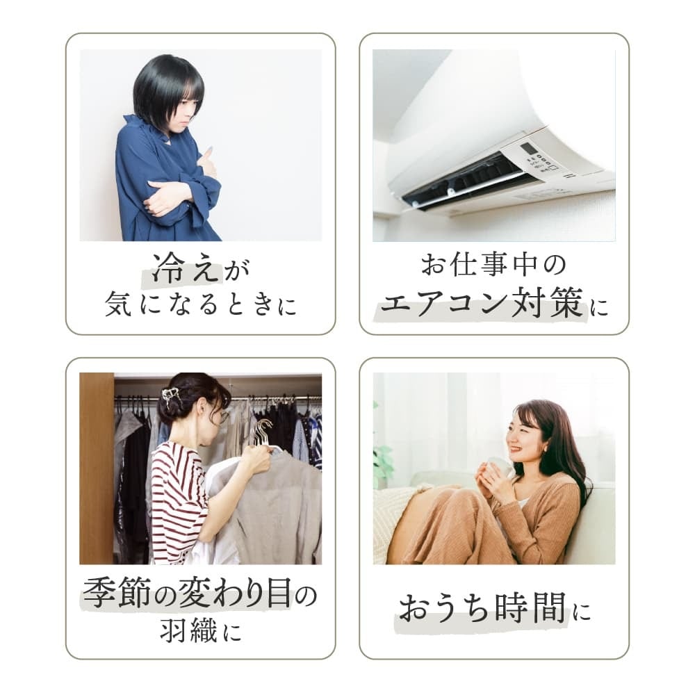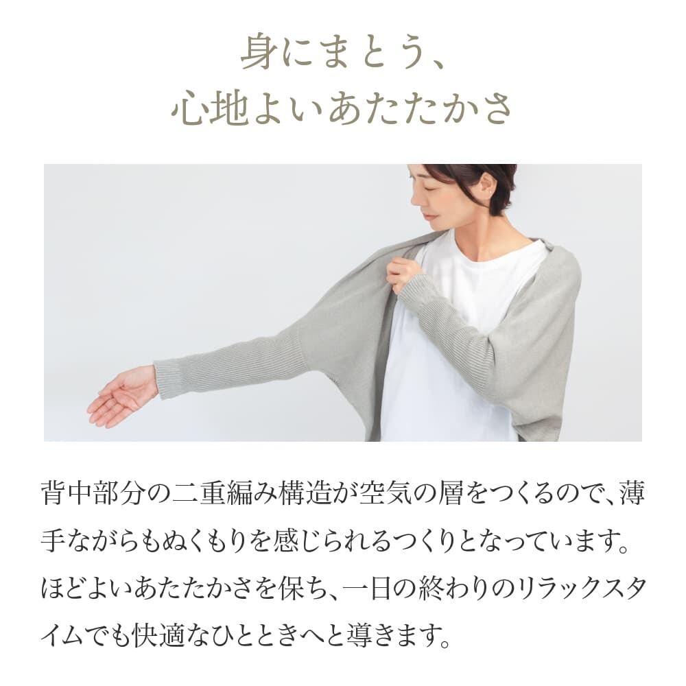 熱くなりすぎず、やさしくあたためるので、羽織るだけで心地よく過ごせます。