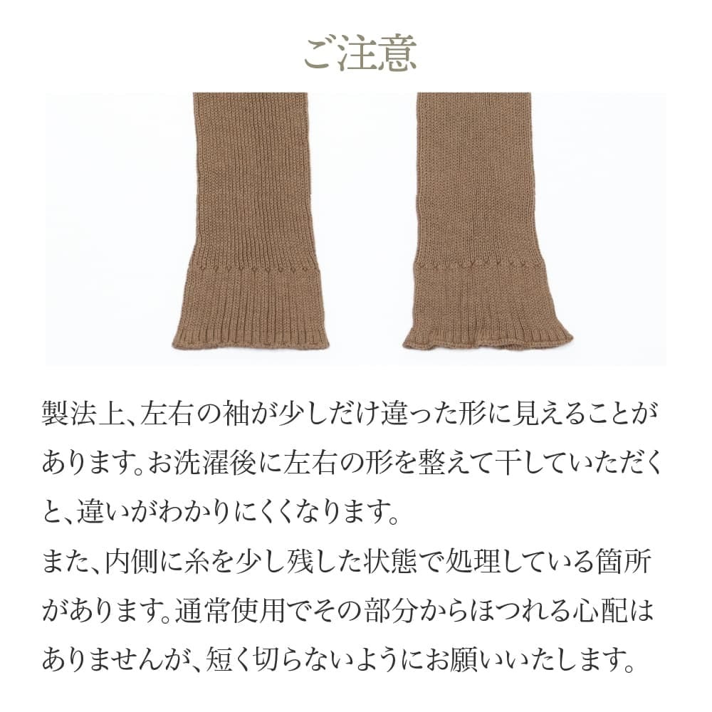 ●製法上、左右の袖が少しだけ違った形に見えることがあります。 お洗濯後に左右の形を整えて干していただくと、違いがわかりにくくなります。