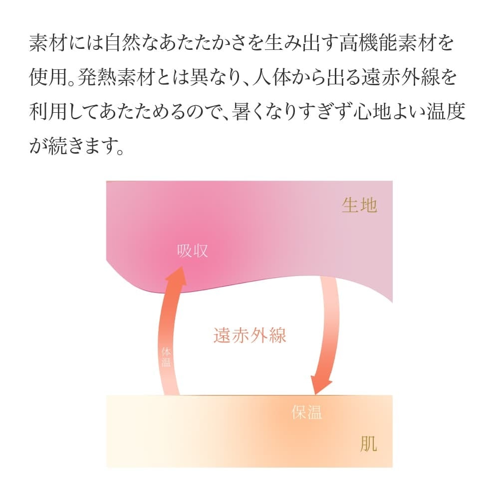 二重編み構造と遠赤外線素材が自然なあたたかさをキープ