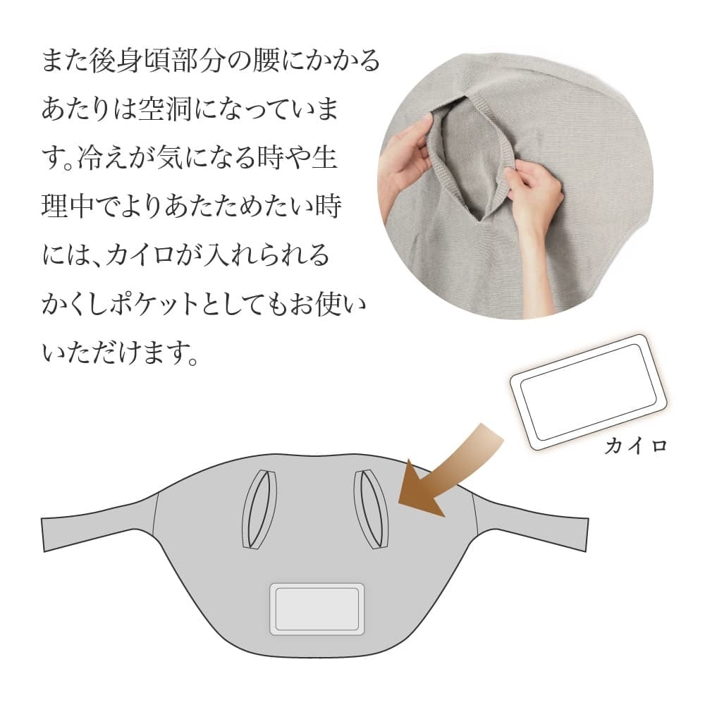 腰回りにカイロを入れられる便利なかくしポケット付き