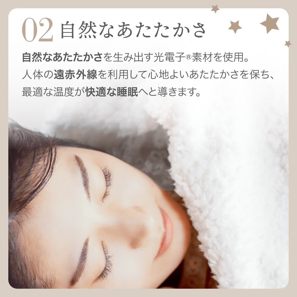 人体の遠赤外線を利用して心地よいあたたかさを保ち、最適な温度が快適な睡眠へと導きます。