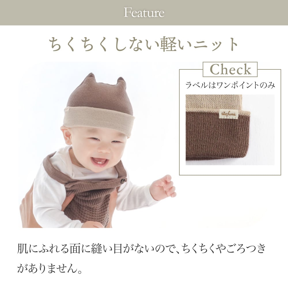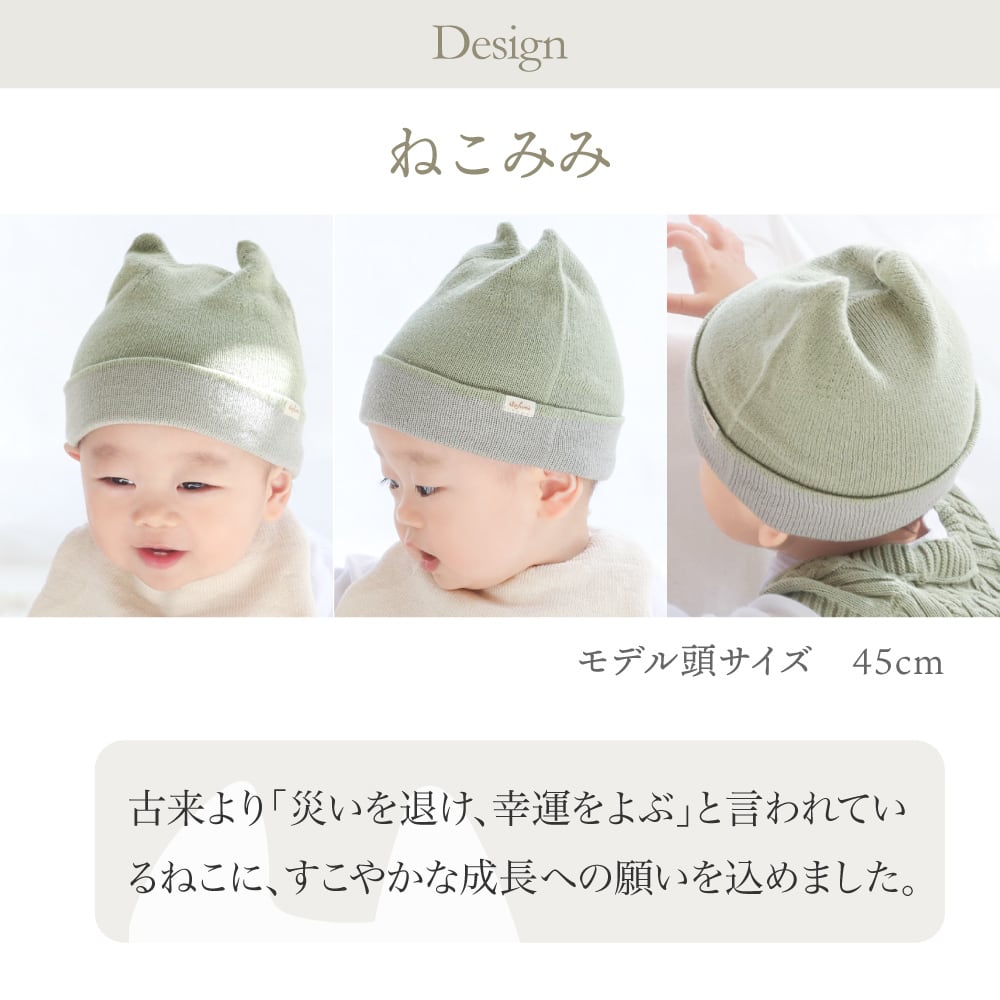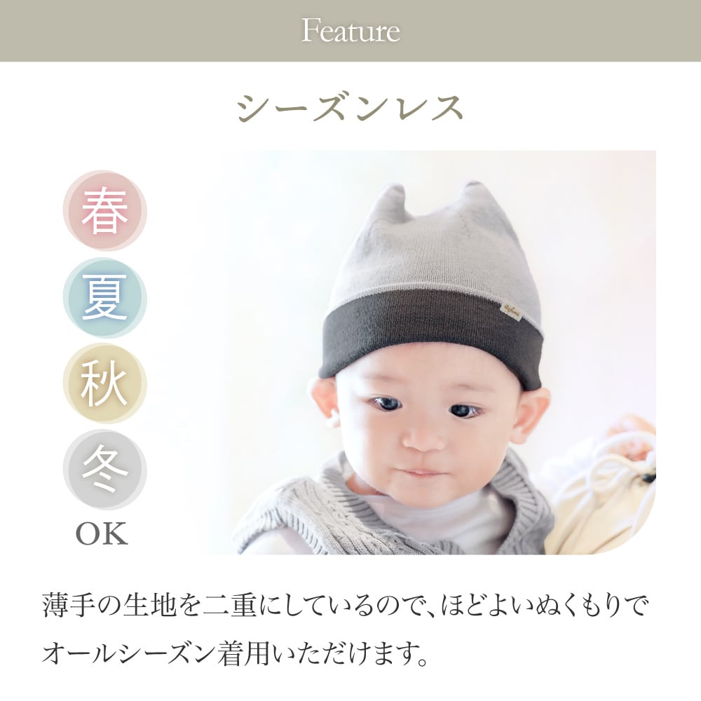 オーガニックコットン ねこみみ帽子(リバーシブル) *ベビー* <全3色>