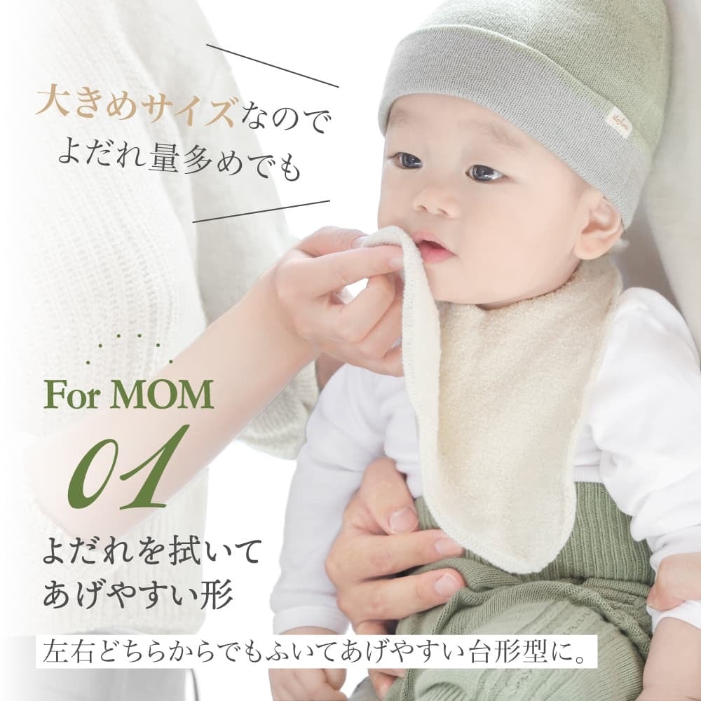 どちらからでもぬぐってあげやすいよう、大きめの台形が特徴です。